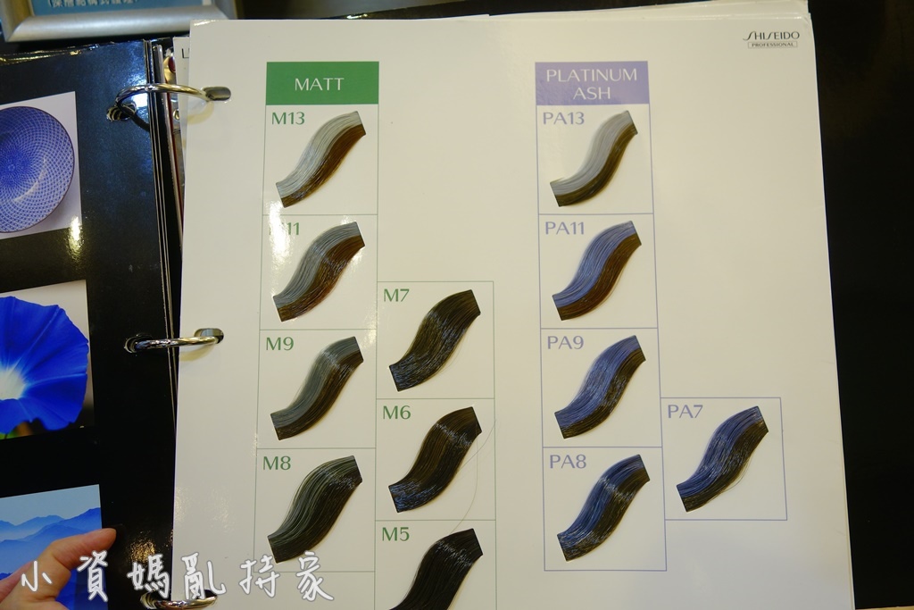 設計師推薦我染BABY PINK的顏色,因為言談中感覺我比較保守,所以建議我染較自然的BaP8,資生堂的髮卡每一色都有呈現有漂跟沒漂所染出來的髮色,我不漂髮,染出來的會是該色卡下層較深的樣子