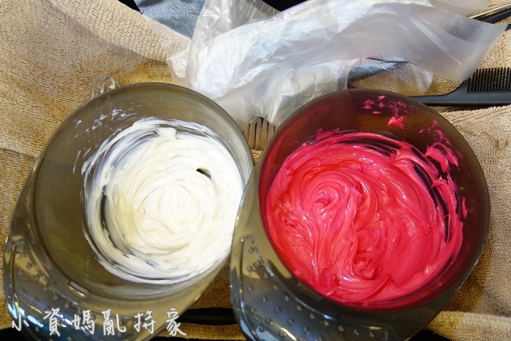雖然知道染膏的顏色不代表實際頭髮會呈現的顏色,但是看到這麼桃紅的染膏,心裡還是會有點驚驚阿!不知道等等我的頭毛會變成甚麼樣子?
