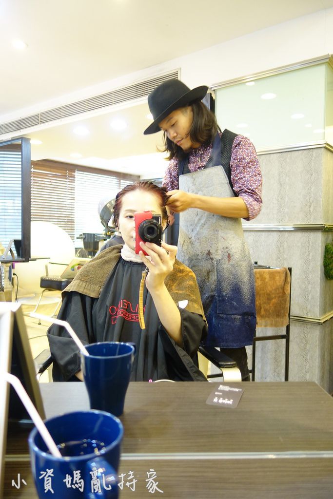 因為菲菲討奶還是很頻繁,但是我要染護髮,會花比單純剪髮多一點的時間,跟家人商量過後,還是請老公陪同來,在不用餵奶但要討抱的時候幫忙照顧菲菲
